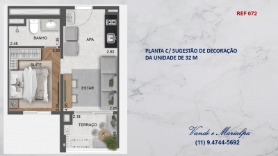 02 DORM| 01 SUÍTE| 01 BANHO | SALAS JANTAR/ESTAR| COZ/ A.SERVIÇOS | TERRAÇO C\\CHURRASQUEIRA |01 VG | 62,67M²